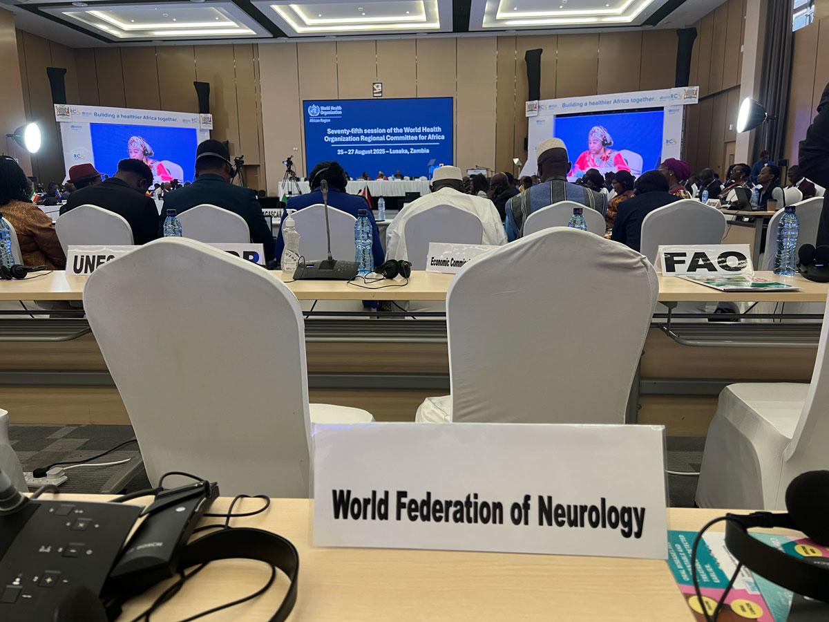 The World Federation of Neurology (WFN) participated in the 75th Session of the WHO Regional Committee for Africa (RC75) in Lusaka, Zambia. Health leaders reviewed strategies to strengthen health systems, with a focus on rehabilitation, infectious diseases and polio eradication. The session opened with a ceremony in which WHO Director-General Dr. Tedros Adhanom Ghebreyesus received the medal of Officer of the Order of the Eagle of Zambia from President Hakainde Hichilema.