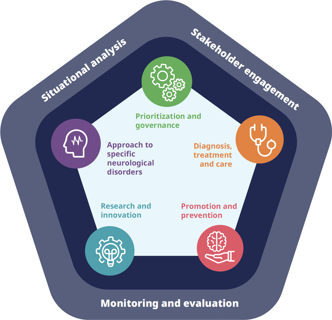 To prepare for implementing IGAP at the national or subnational level using an integrated approach to neurological disorders, it is recommended to start with stakeholder mapping and engagement and a situational analysis, as described in the relevant sections. The sections on prioritization and governance, diagnosis, treatment and care, promotion and prevention, and research and innovation are each divided into topics which follow the structure of the IGAP and suggest specific steps to be taken in thematic areas.